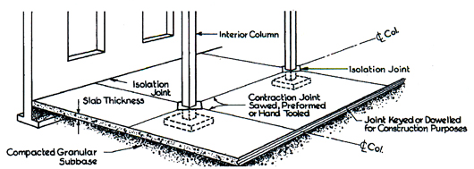 Contraction joint มีไว้เพื่อให้เกิดการเคลื่อนตัวของคอนกรีต เนื่องจากคอนกรีตเกิดการหดตัวแบบแห้ง จากการที่น้ำในคอนกรีตระเหยไปในอากาศ การหดตัวนี้ทำให้เกิดการแตกร้าวของคอนกรีตได้ การทำ Contraction joint เป็นการบังคับให้การแตกร้าว เกิดในตำแหน่งที่กำหนด โดยทั่วไป ควรทำ contraction joint ที่ระยะห่างทุกๆ 24-35 เท่าของความหนาแผ่นพื้น และแบ่งพื้นเป็นสี่เหลี่ยมชิ้นเล็กๆ โดยให้อัตราส่วน ด้านยาวต่อด้านสั้น ไม่เกิน 1.5:1.0 ถ้าเป็นไปได้ ควรกำหนดเป็นสี่เหลี่ยมจตุรัส